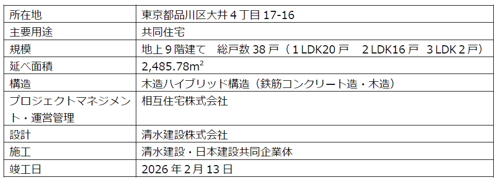 第一生命保険株式会社(代表取締役社長:隅野俊亮、以下「第一生命」)は、清水建設株式会社(代表取締役社長:新村達也、以下「清水建設」)の技術協力のもと、東京都品川区大井4丁目において開発を進めていた賃貸マンション「プライマル品川大井町」(以下「本物件」)が2月13日に竣工したことをお知らせします。