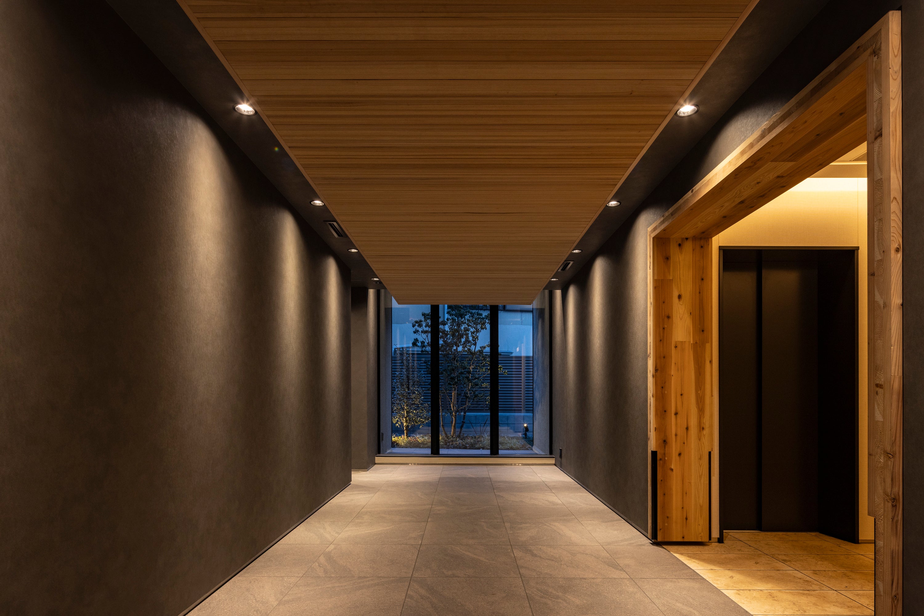 外観についても、住戸バルコニーの軒天井にハイウッドスラブを採用し、さらに1階エントランス回りに天然木仕上げを施したことで、都心にありながらも木の温もりを感じることができる外装を実現しました。