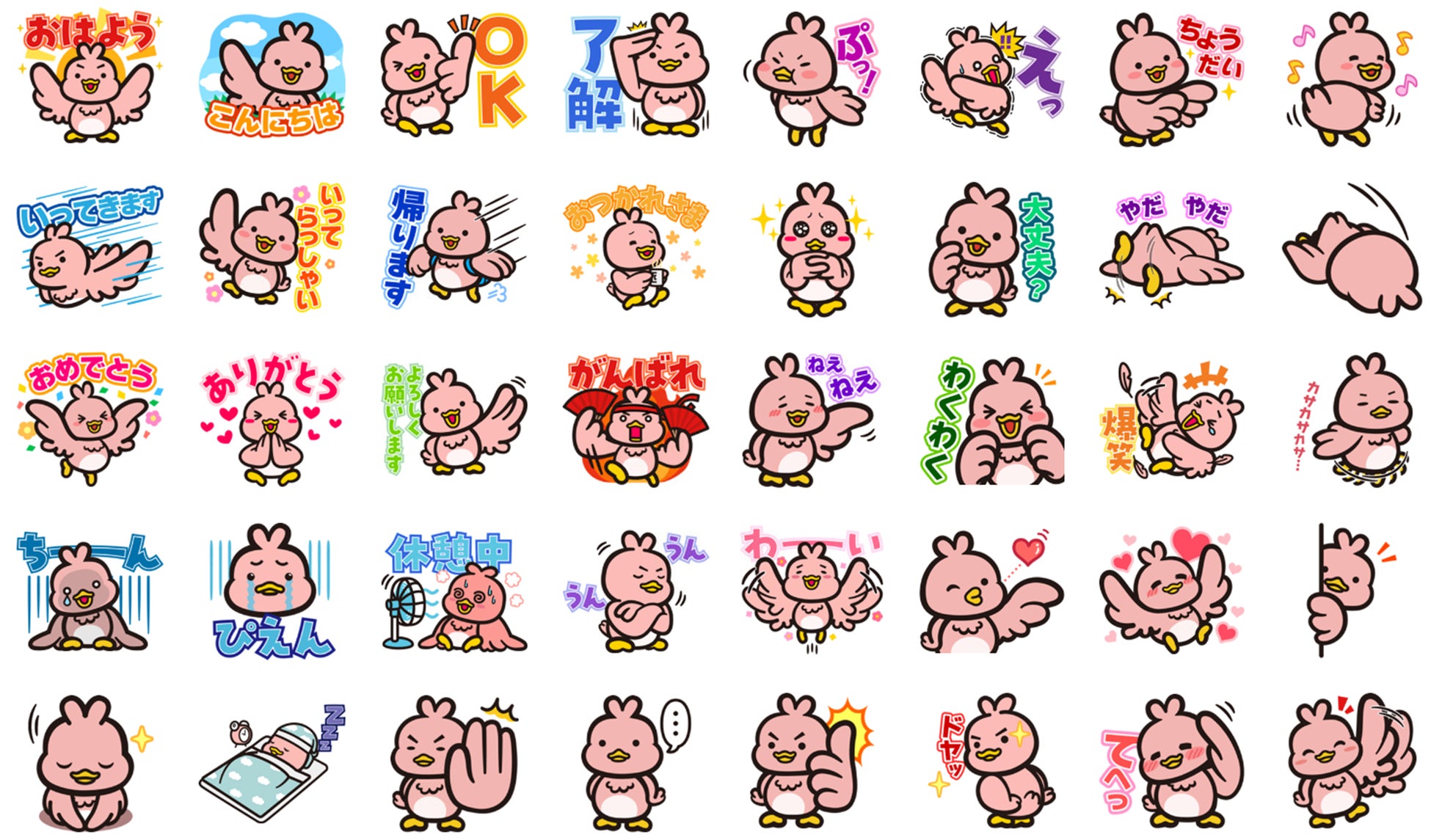 ・鳥をモチーフに、淡いピンク色のふわふわの羽毛に包まれた体とハート型に立ち上がった頭の毛、つぶらな瞳が特長。「キャッシュレスを通して、皆に幸せになってほしい」と願ってやまない真面目で一生懸命な性格の半面、時々うっかりしてしまう“お茶目な一面”も。