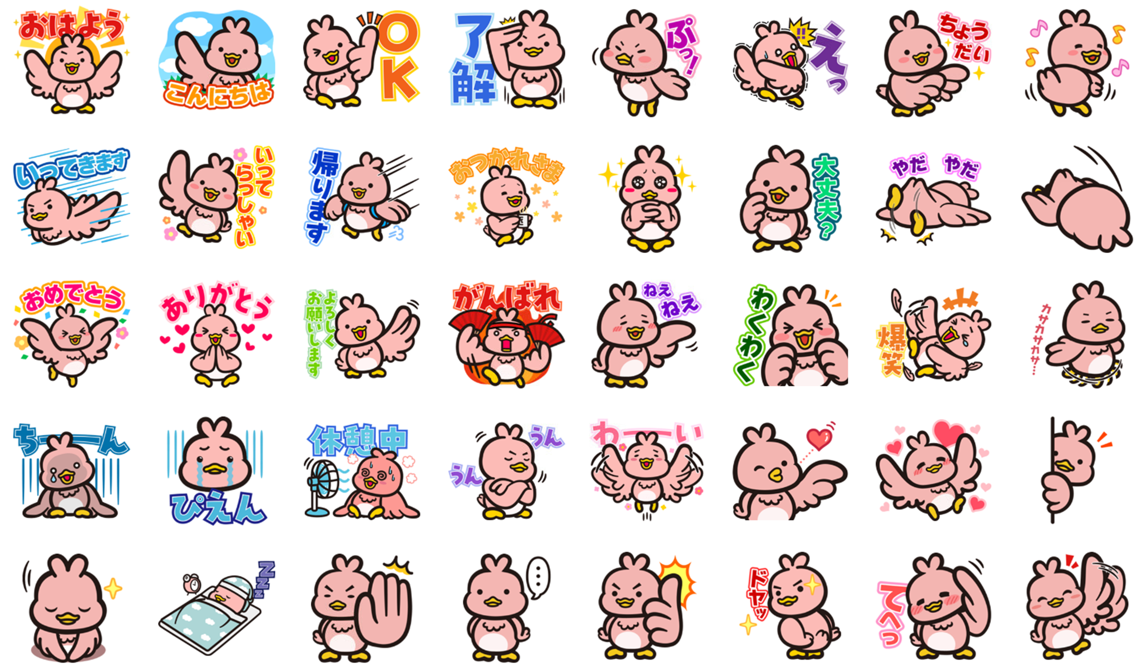 ・鳥をモチーフに、淡いピンク色のふわふわの羽毛に包まれた体とハート型に立ち上がった頭の毛、つぶらな瞳が特長。「キャッシュレスを通して、皆に幸せになってほしい」と願ってやまない真面目で一生懸命な性格の半面、時々うっかりしてしまう“お茶目な一面”も。