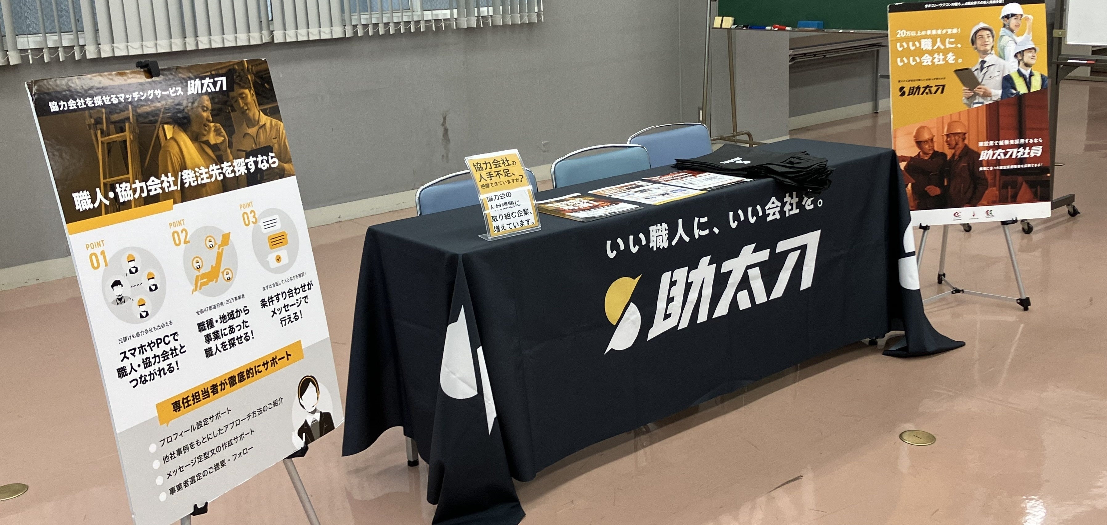 当日は、10社の建設業者さまにご参加いただき、提携先である株式会社助太刀と連携して各社が抱える人材確保・採用に関する課題について個別にご相談をいただきました。参加企業からは、自社の課題を具体的に整理できたとの声も寄せられました。なかには、規定の相談時間45分では足らず、延長して熱心に話し合う参加者の方もいらっしゃいました。