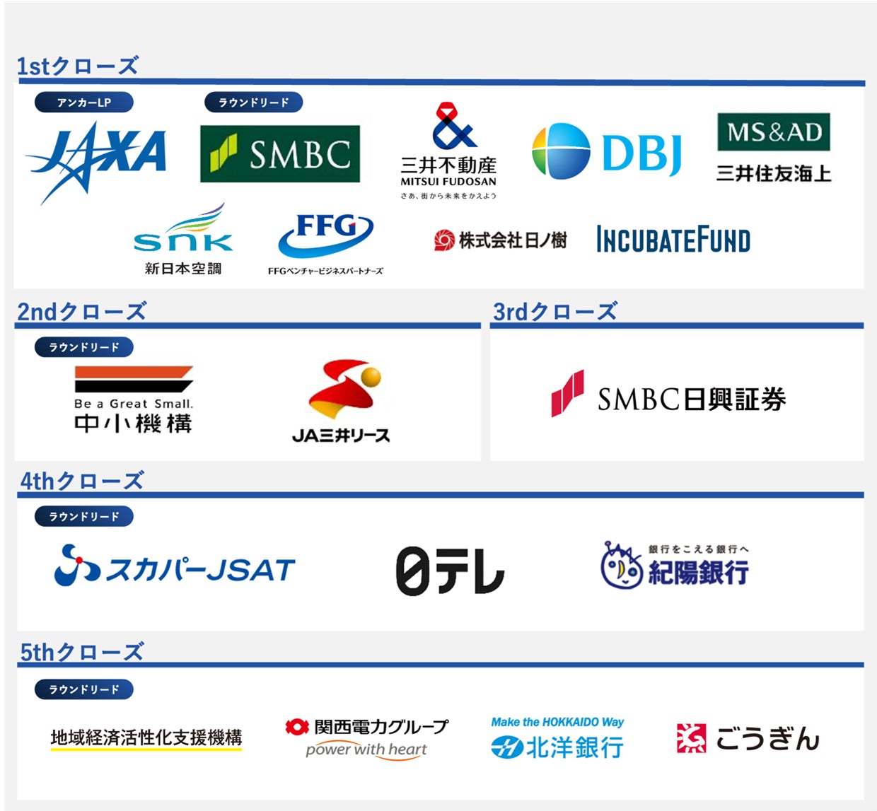 これまでに、以下のような日本を代表する機関投資家様・事業会社様等に本ファンドの取り組みにご賛同・ご期待いただき、LPとして参画いただいております。