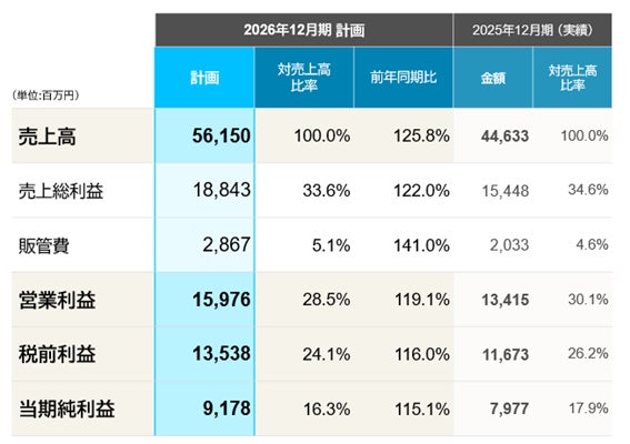 中期経営計画最終年度である2027年度の目標(売上高600億円、税前利益167億円)の実現に向け、2026年度も創業以来の増収増益達成を目指します。