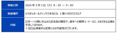あわせて、取扱いを記念して、カープの佐々木泰選手、齊藤汰直選手をお招きし、セレモニーを開催しますので、下記のとおりお知らせいたします。