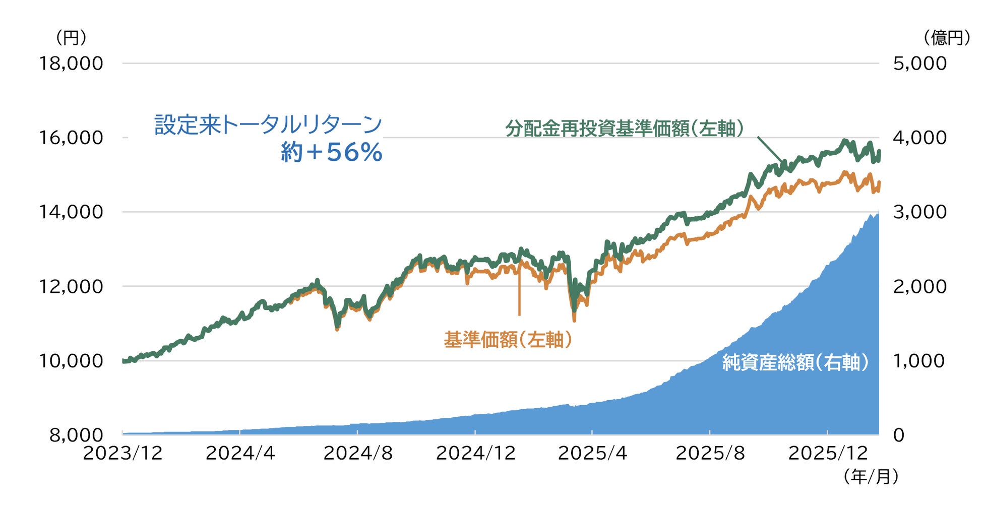 ■基準価額および純資産総額の推移(2023年12月28日~2026年2月19日、日次)