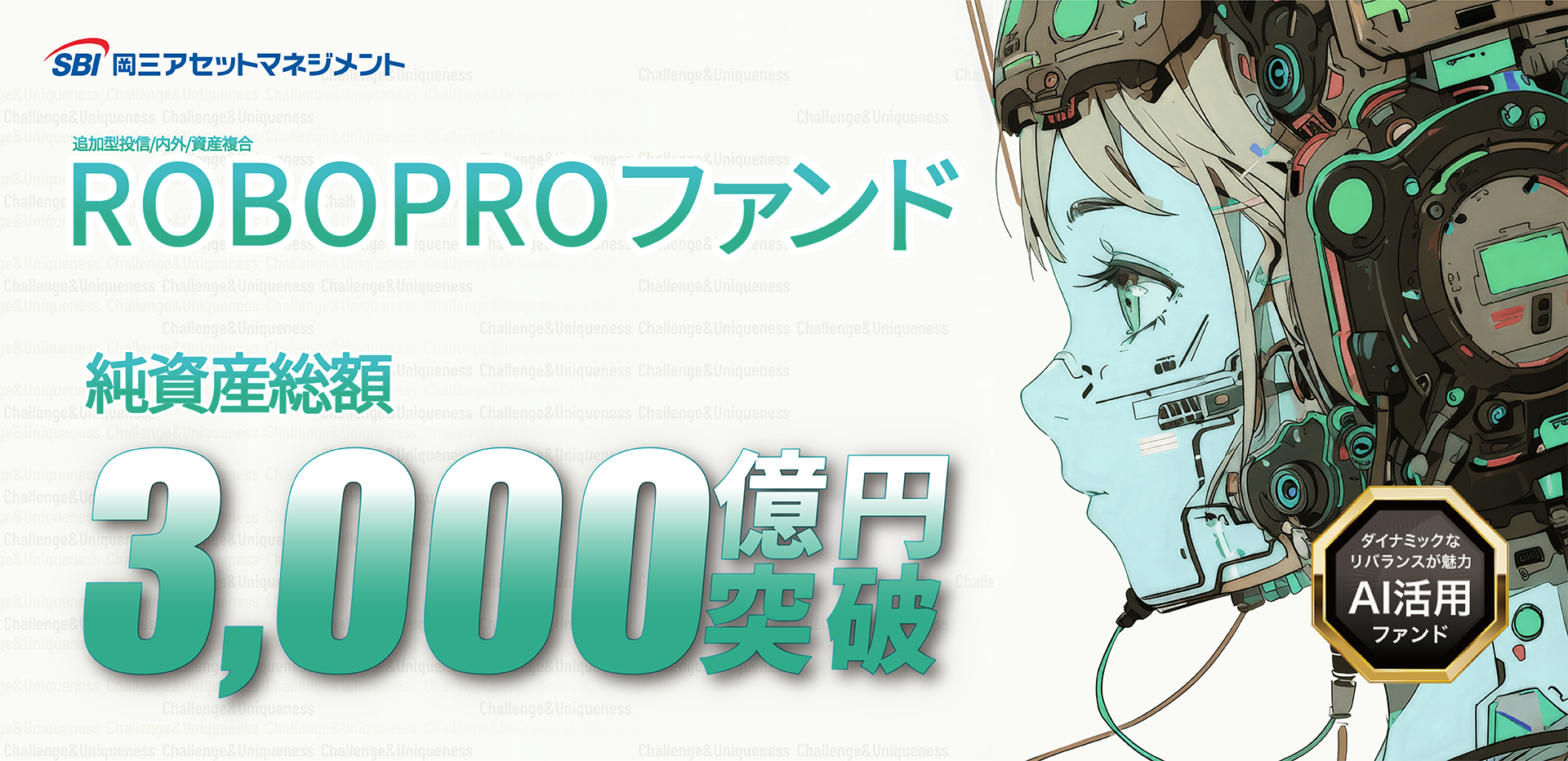 SBI岡三アセットマネジメント株式会社(本社:東京都中央区、代表取締役社長:塩川克史)が運用する「ROBOPROファンド」は、純資産総額が3,000億円を突破しました。AIを活用した投資信託が、実際の資産形成の選択肢として広がる中での突破となりました。