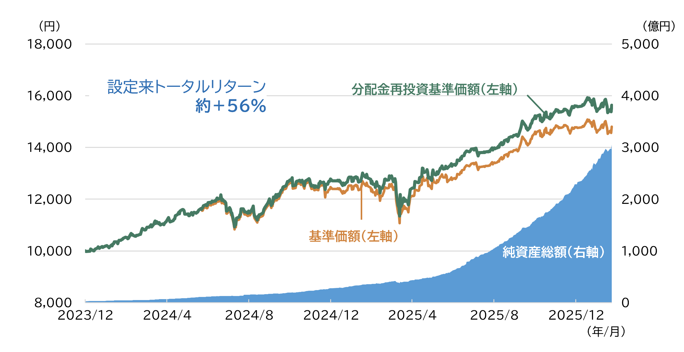 ■基準価額および純資産総額の推移(2023年12月28日~2026年2月19日、日次)