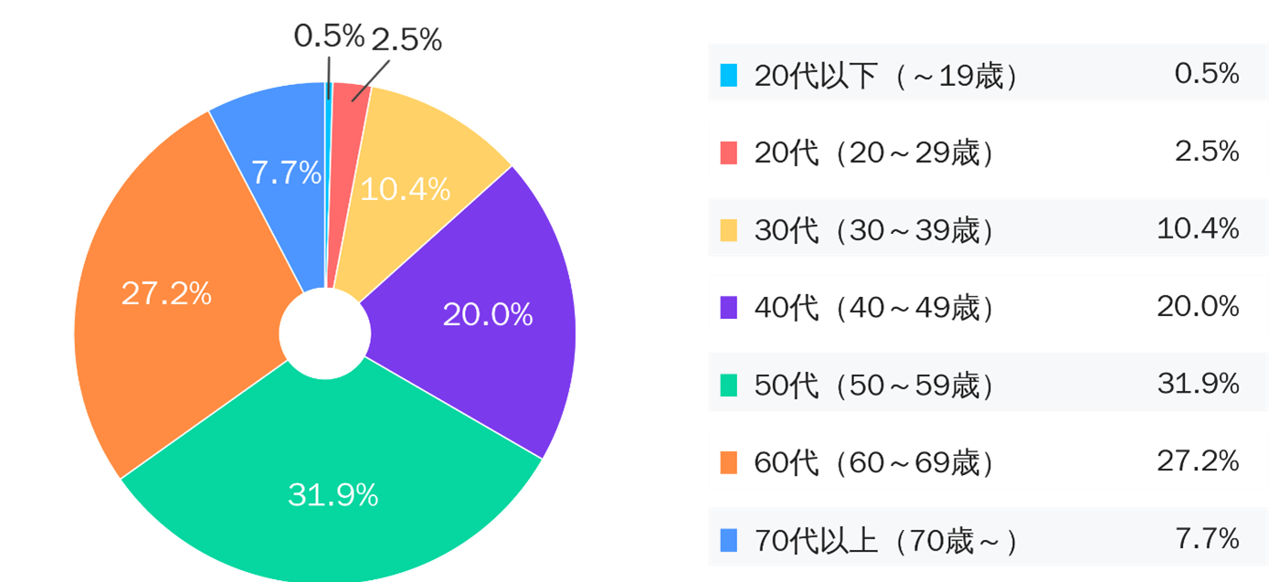 40代(40~49歳):371名、50代(50~59歳):926名、60代(60~69歳):