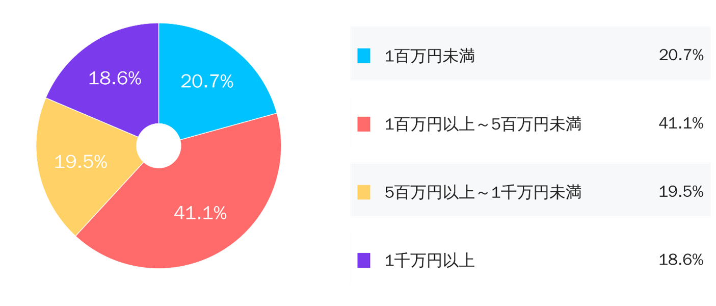 ・預入金額は、1百万円以上~5百万円未満が全体の41.4%と最も多く、続いて1百万円未満が20.7%、5百万円以上~1千万円未満が19.5%でした。1千万円未満の預け入れが全体の約8割を占めています。