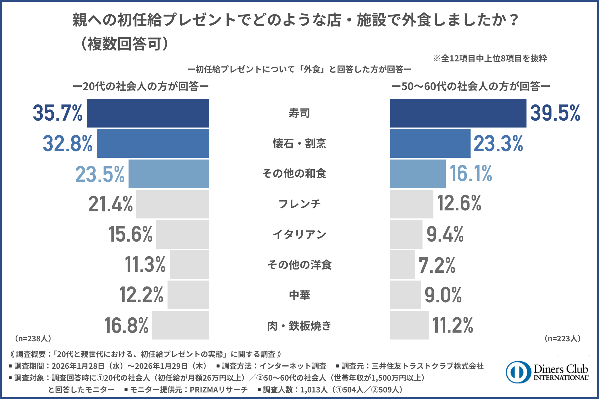 【新富裕層の消費行動調査】初任給プレゼントの定番は今も昔も「寿司」──でも20代の4人に1人が「店・施設の雰囲気や格式に不安」