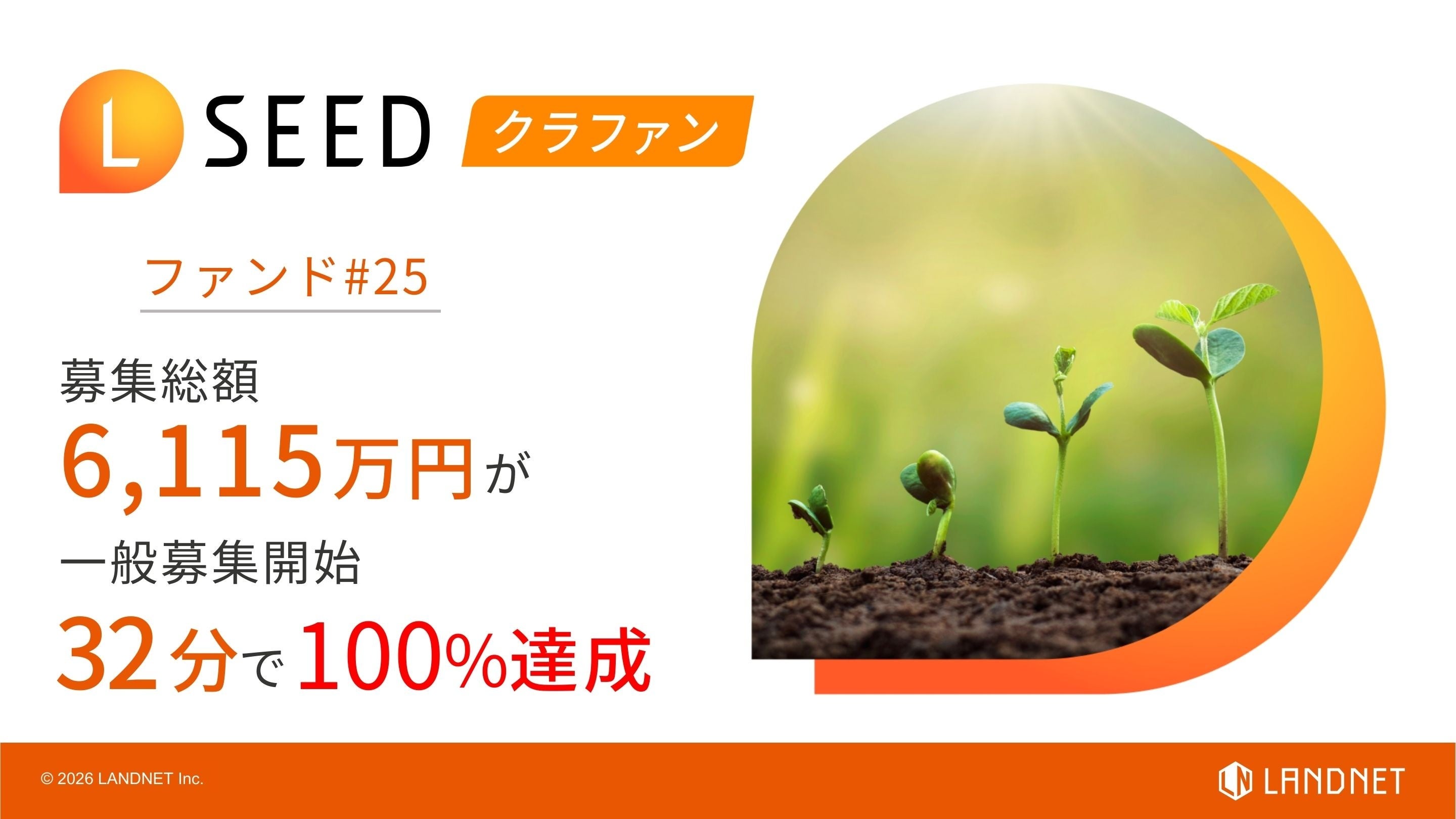 最新のテクノロジーと独自のデータベースを活用し、不動産の流通・再生・運用に新たな価値を提供する株式会社ランドネット(本社:東京都豊島区/代表取締役社長:榮 章博、証券コード:2991、以下ランドネット)は、不動産クラウドファンディング『LSEED (エルシード)#25』において、一般募集開始からわずか32分で募集総額6,115万円に達したことをお知らせいたします。