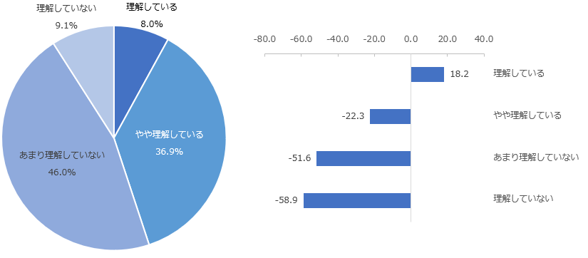 また、回答別にNPSも分析したところ、「理解している」と回答した人のNPSは18.2、また「やや理解している」と回答した人のNPSも-22.3となり、理解していないと回答した人と比較して高くなりました。