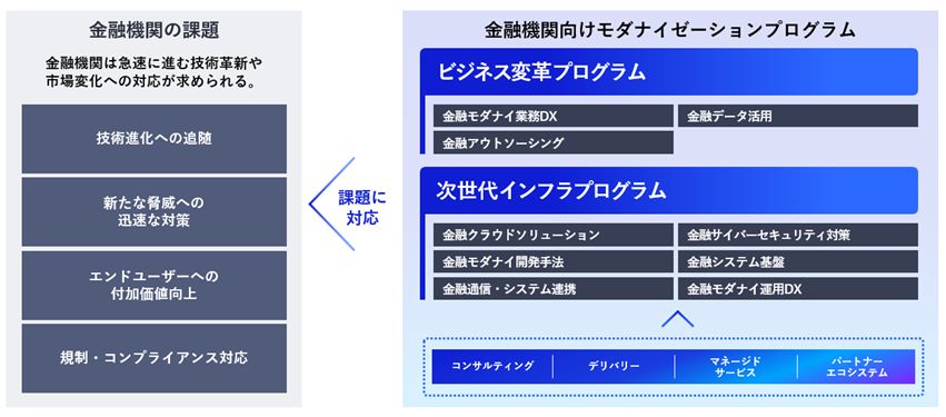 これら課題に向き合う金融機関の変革を支えるため、本プログラムを進化させ、先端技術の収集・検証を加速する仕組み、共同化による効率的なIT運用、クラウド・アプリケーションを一体で扱うパートナー連携を強化します。