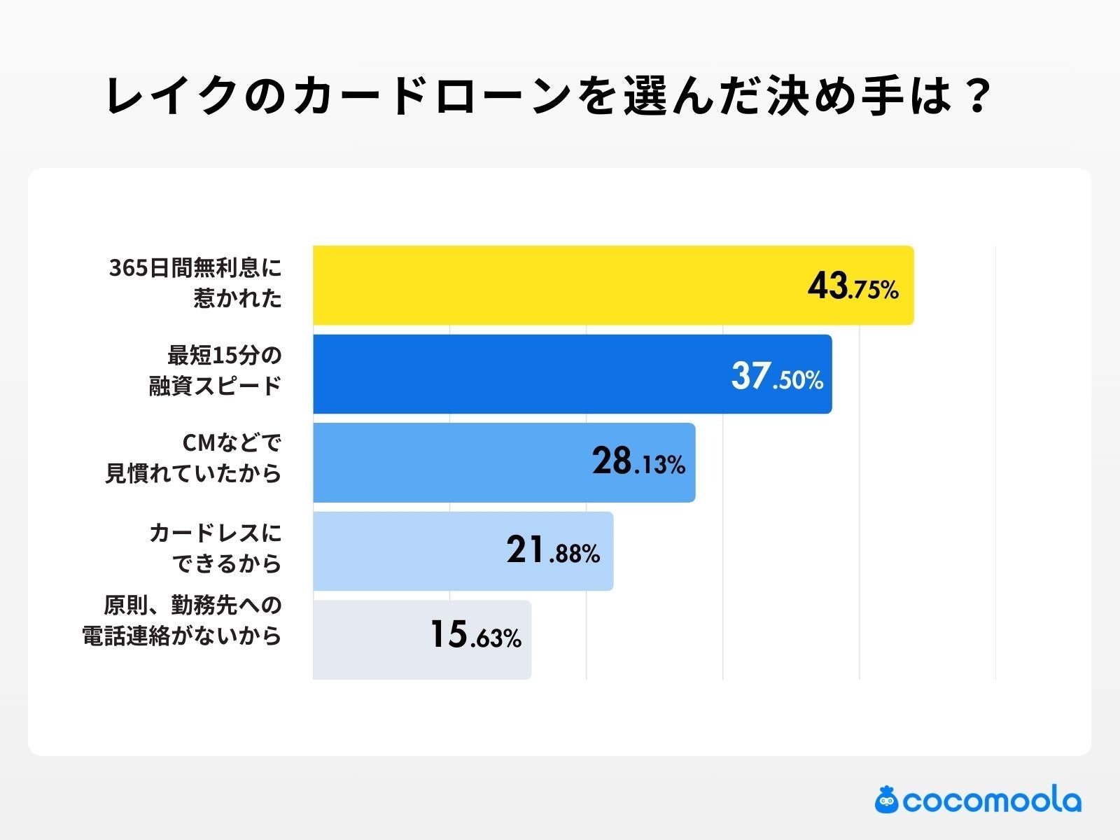 株式会社ゼロアクセル(本社:東京都千代田区、代表取締役:大福裕貴、以下ゼロアクセル)は自社運営サイト『ココモーラ』にて、「レイクのカードローンに関するアンケート調査」を行いました。