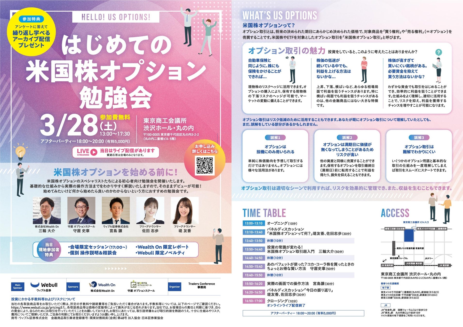 デジタル投資プラットフォーム大手、米国Webull Corporation (NASDAQ:BULL) の日本拠点であるウィブル証券株式会社(所在地:東京都中央区、代表取締役:小島 和)は、 2026年3月28日(土)に東京・丸の内で開催される「はじめての米国株オプション勉強会」にメインスポンサーとして参加します。
