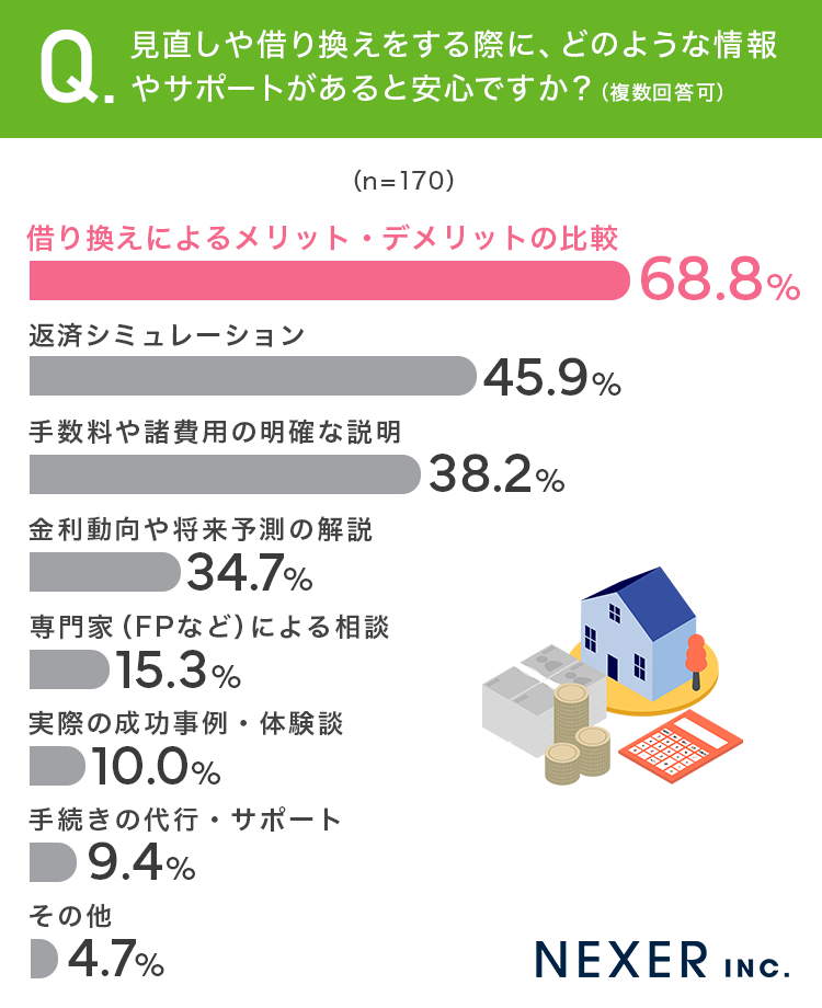 見直しを進めるうえでは、借り換えによるメリットとデメリットを金額で比較できる情報や、返済シミュレーションなどの具体的な判断材料が求められていました。