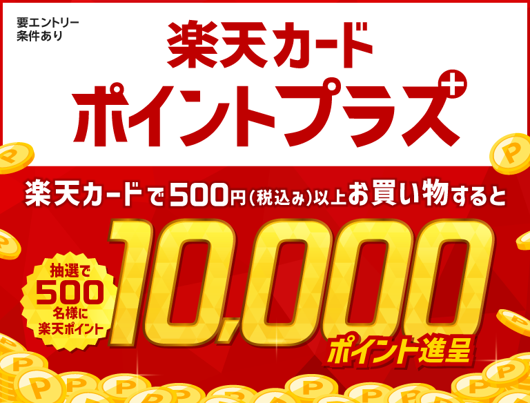 本キャンペーンは、楽天カード会員様専用のサービス「楽天カードポイントプラス」でエントリーのうえ、3月1日(日)から3月31日(火)に「セブン‐イレブン」で「楽天カード」を合計500円以上(税込み)ご利用してお買い物されたお客様の中から抽選で500名様に10,000ポイントを進呈します。