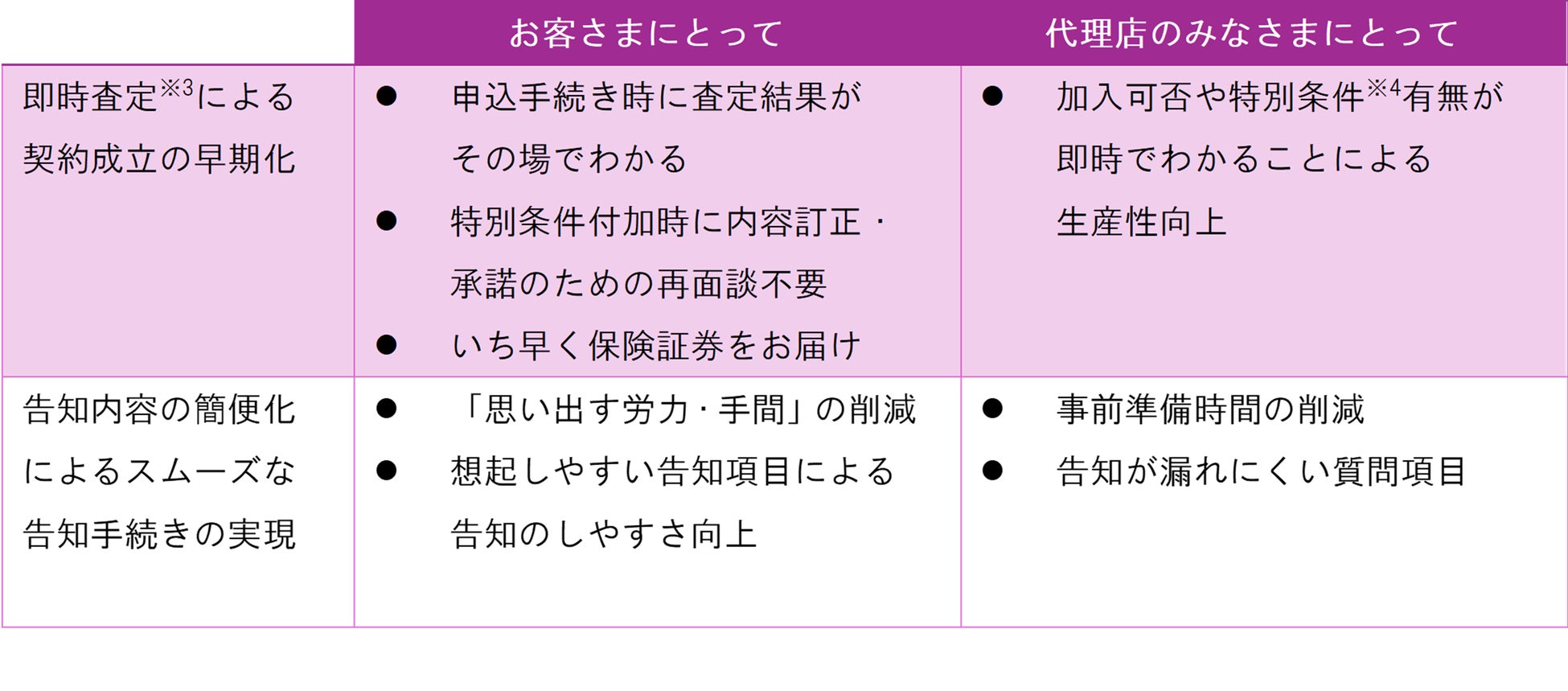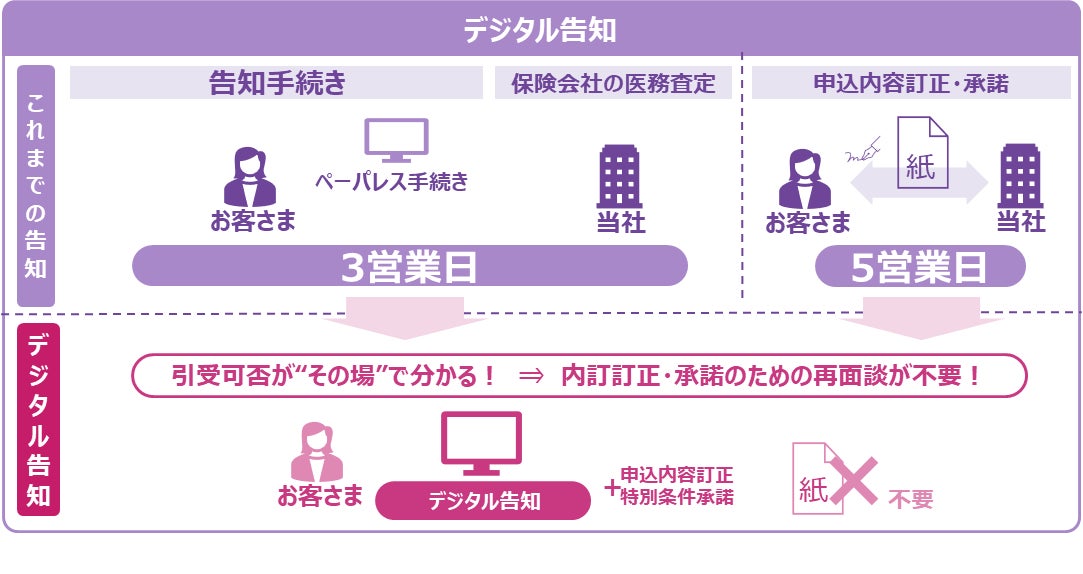 ※3「デジタル告知」の査定結果はお客さまに告知いただいた内容の医学的査定結果となり、当社への過去の申込内容や給付歴等の審査は申込後に別途実施します。