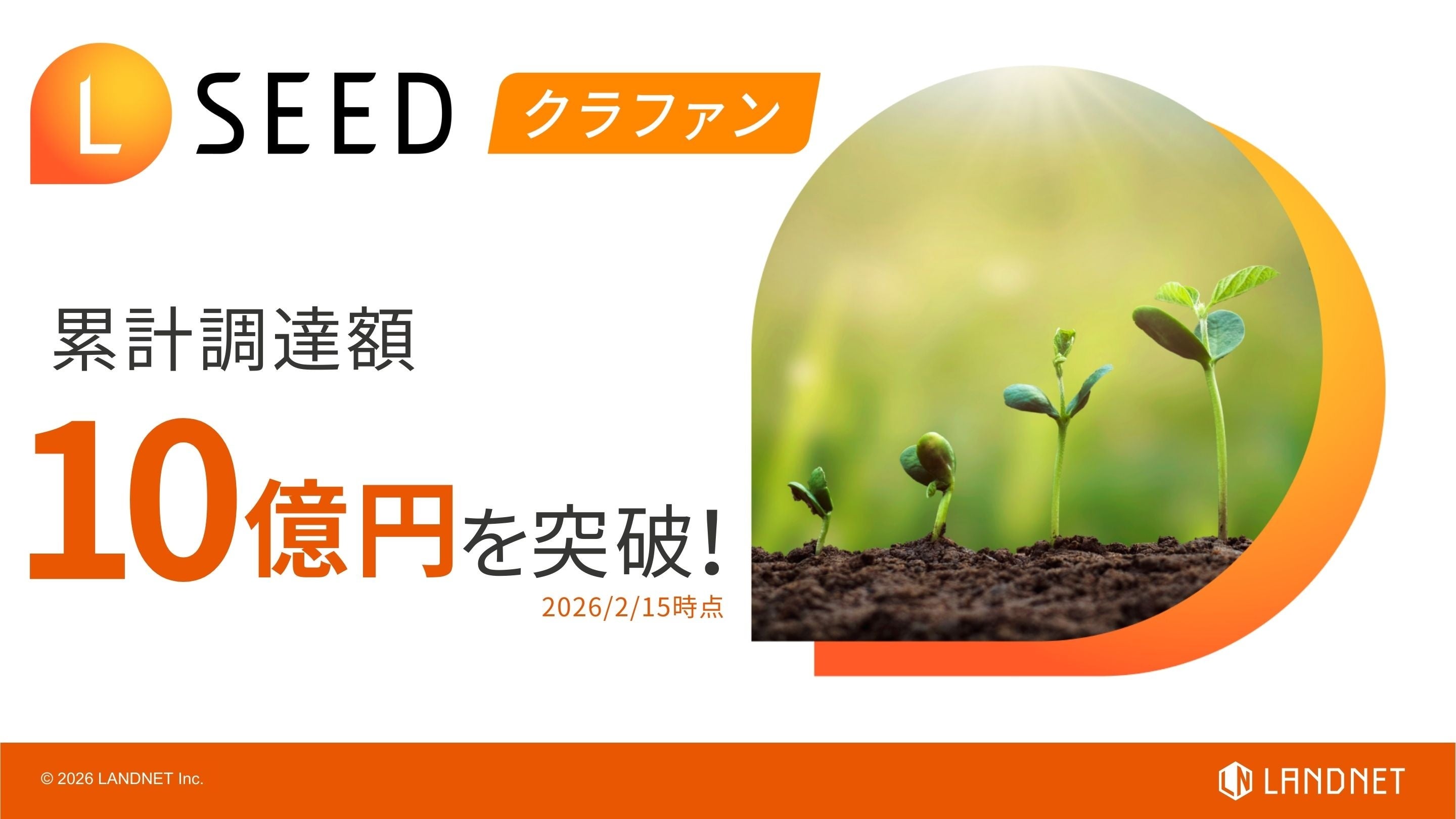 最新のテクノロジーと独自のデータベースを活用し、不動産の流通・再生・運用に新たな価値を提供する株式会社ランドネット(本社:東京都豊島区/代表取締役社長:榮 章博、証券コード:2991、以下ランドネット)は、不動産クラウドファンディング『LSEED(エルシード)クラファン』において、2026年2月15日時点で累計調達額が10億円を突破したことをお知らせいたします。