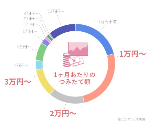 当社の直販のお客様は全体の50%弱が資産形成層である40代以下の方々です。また、全体の約50%のお客様が月1~3万円のつみたて投資を行なっており、つみたて平均金額は約3万円となります。