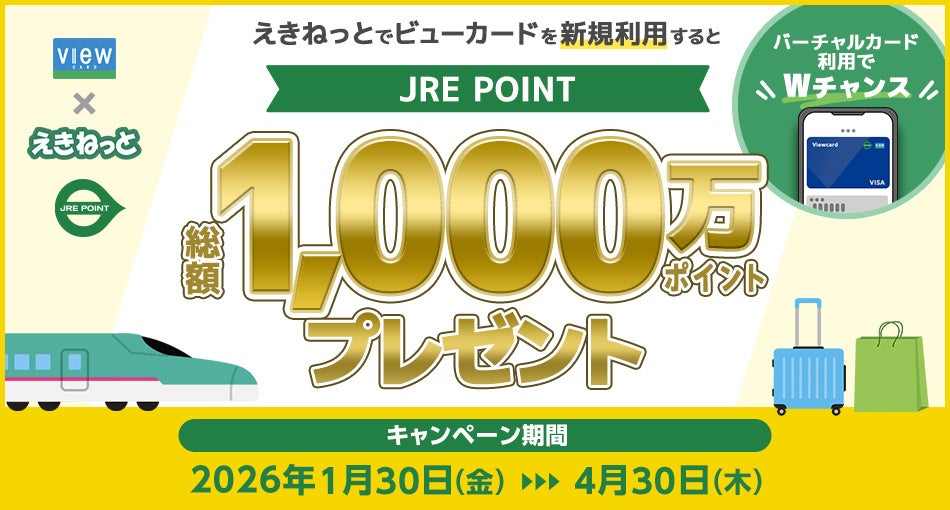 ○ 株式会社ビューカード(本社:東京都品川区、代表取締役社長:新井 健一郎)は、モバイルSuicaのご利用やえきねっとでのきっぷ購入でJRE POINTがおトクに貯まるサービス「VIEWプラス」を提供しています。そして、この春は新生活やお出かけにJR東日本のモバイルSuica定期券やきっぷをお求めの際、ビューカードでお支払いいただくとさらにJRE POINTをプレゼントするおトクなキャンペーンを実施しています。