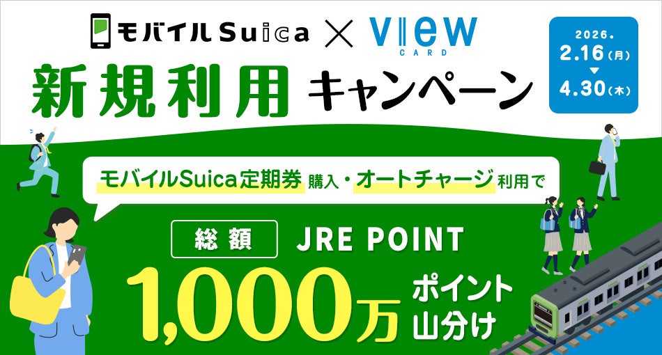 ○ 株式会社ビューカード(本社:東京都品川区、代表取締役社長:新井 健一郎)は、モバイルSuicaのご利用やえきねっとでのきっぷ購入でJRE POINTがおトクに貯まるサービス「VIEWプラス」を提供しています。そして、この春は新生活やお出かけにJR東日本のモバイルSuica定期券やきっぷをお求めの際、ビューカードでお支払いいただくとさらにJRE POINTをプレゼントするおトクなキャンペーンを実施しています。