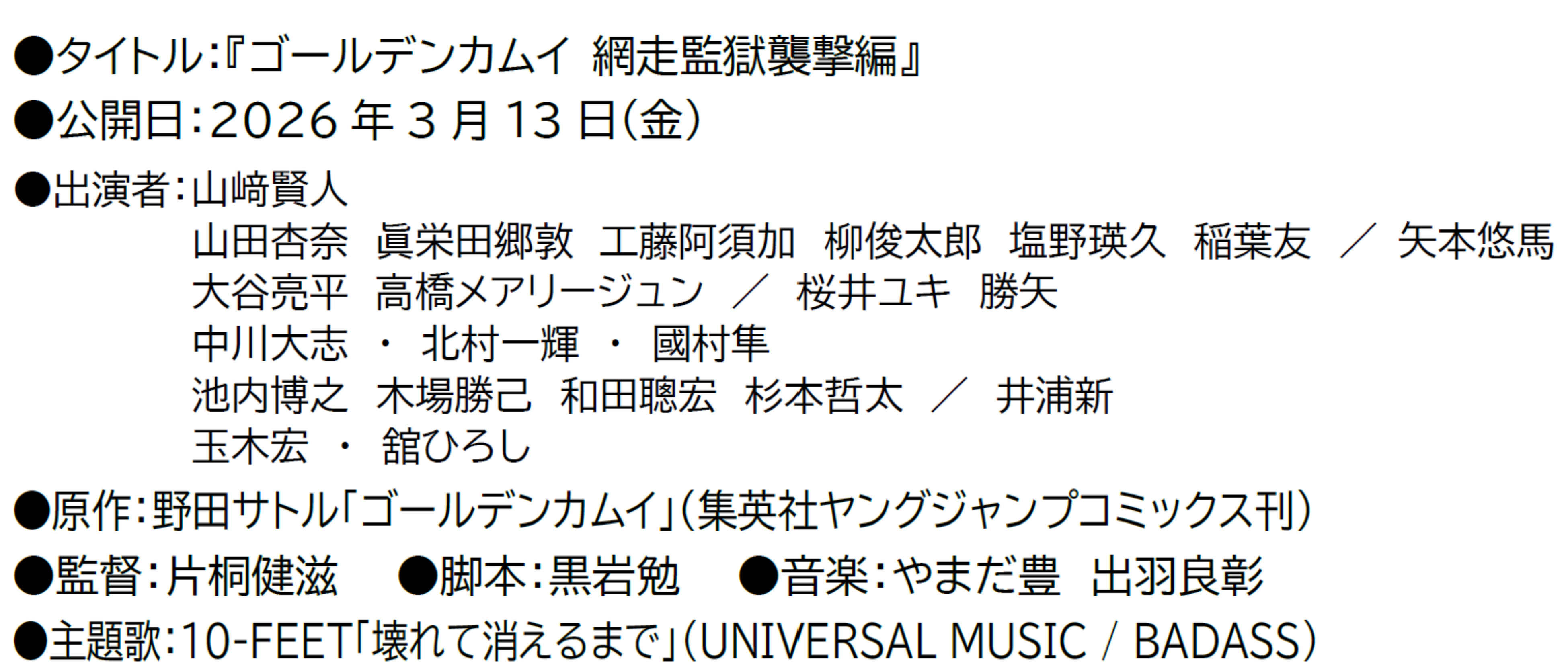 山田杏奈さん出演の映画『ゴールデンカムイ 網走監獄襲撃編』については以下のご案内よりご確認ください!