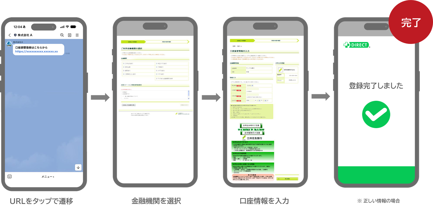 三井住友カードが提供する「WEB口座振替受付サービス」「コンビニ決済(PAYSLE)」「SMBCマルチペイメントサービス」等の決済サービスでは、企業のマイページやWEBサイト、E-mail、SMS等を活用したユーザーインターフェースを活用しておりましたが、今回、「+DIRECT」との連携により、LINEがインターフェースに加わりました。