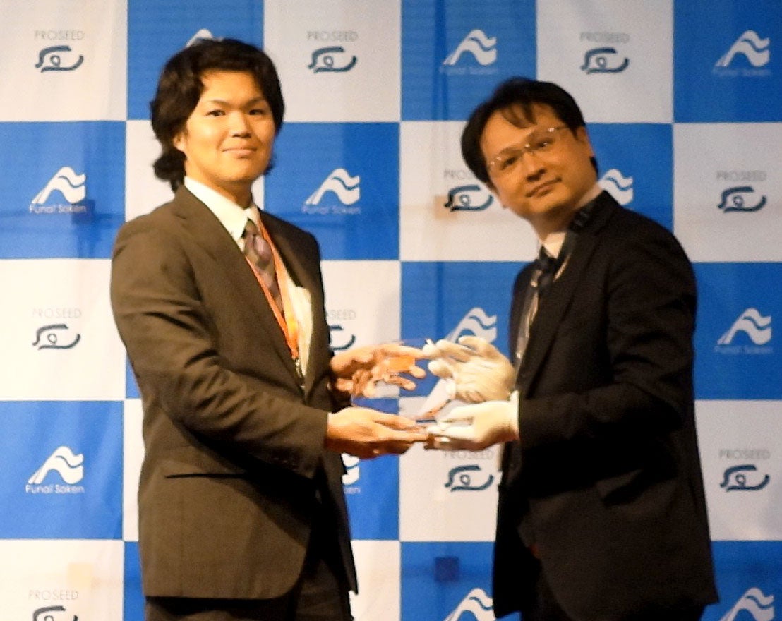 受賞するSBI⽣命 お客様サービス部 江崎課⻑補佐(左)