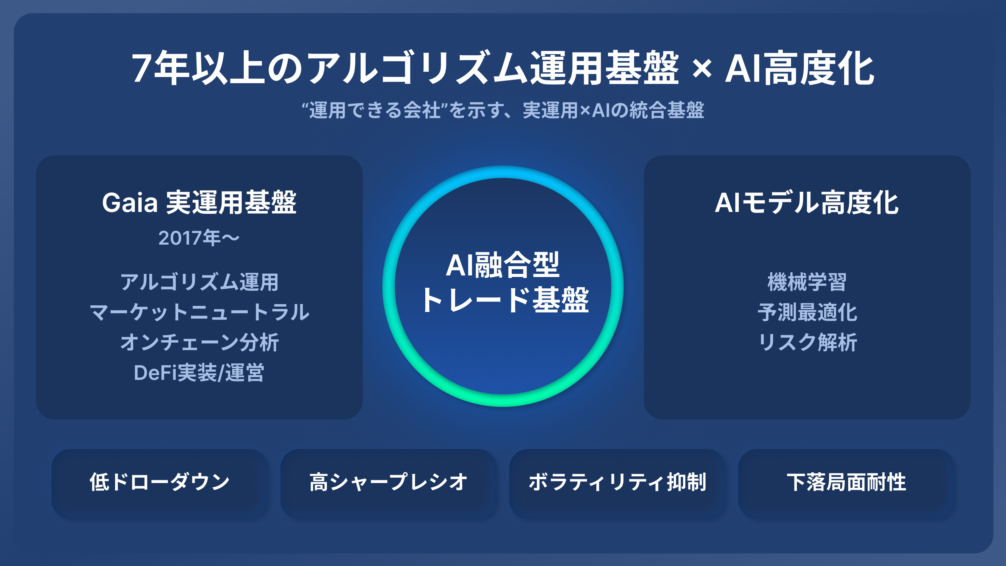 AIネイティブファンドとして、企業財務におけるデジタル資産活用の新たな標準を構築してまいります。」
