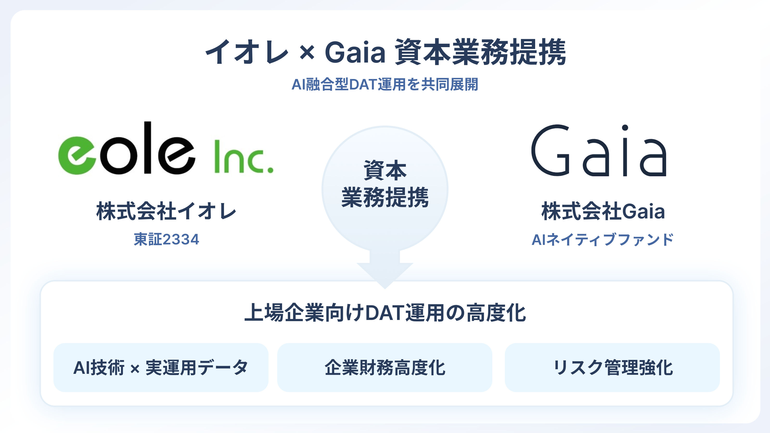 DAT上場企業向けAIネイティブファンドGaia、イオレと資本業務提携AI融合型DAT運用を本格展開