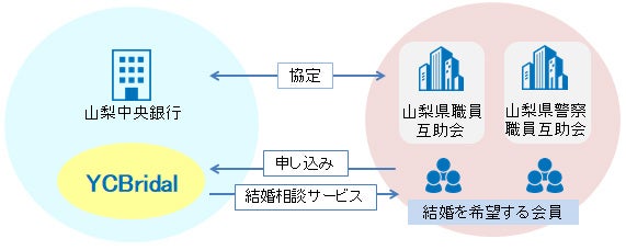 当行は、中期経営計画「Value Creation Company~1st Stage」において「山梨強靭化戦略」を掲げており、「持続可能な地域の共創」の実現を目指し、地元行政機関との連携強化に取り組んでいます。本協定により、両互助会の結婚を希望する会員を対象に、当行は結婚相談サービス「YCBridal」を提供します。