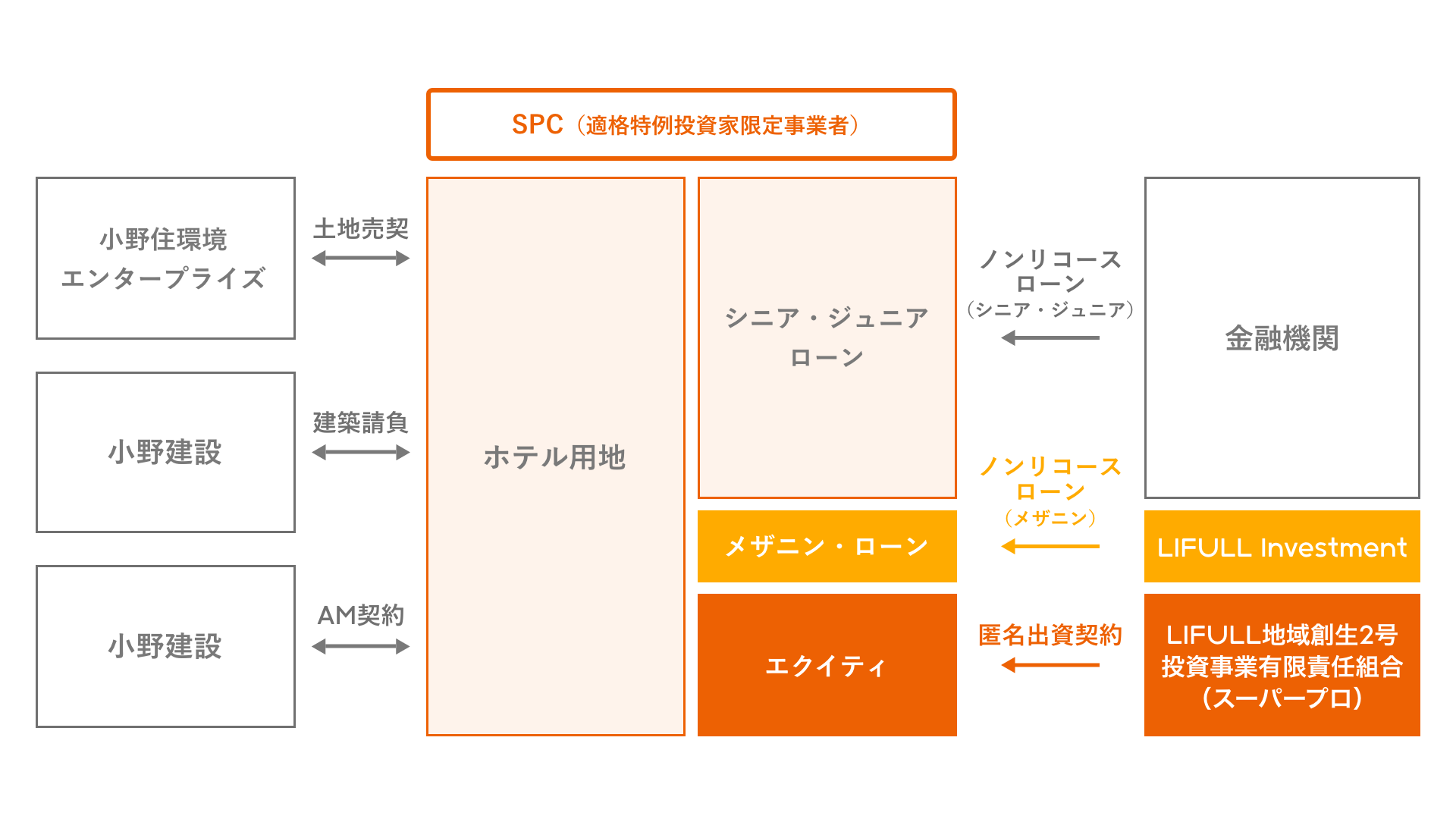 LIFULL地域創生2号ファンドからの出資に加え、LIFULL Investmentが自らメザニン・ローンを提供することで、プロジェクトの円滑な推進を資金面から強力にバックアップします 。