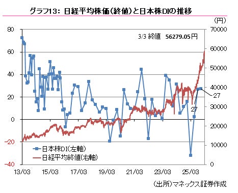 日本株DI:(2025年12月) 27 →(2026年3月)28(前回比 +1ポイント)
