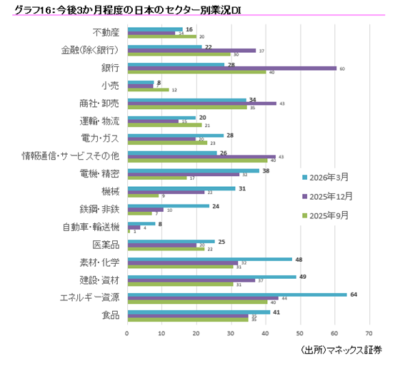 (D-1)日本のセクター別業況DIは「エネルギー資源」「建設・資材」「素材・化学」が高い