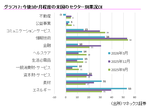 (D-2)米国のセクター別業況DIは「エネルギー」が最高、「不動産」が最低