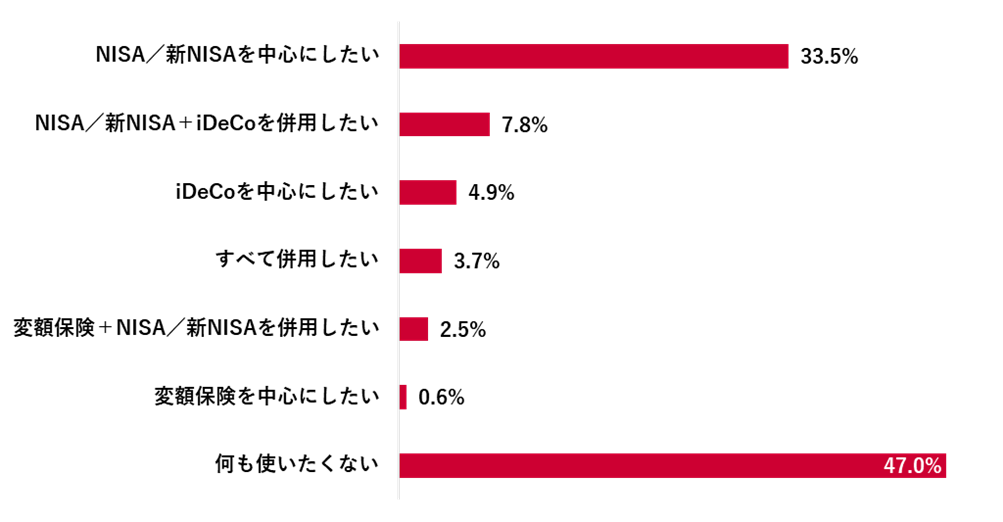 資産形成に、NISA・新NISA、iDeCo、変額保険の「何も使いたくない」人は47.0%