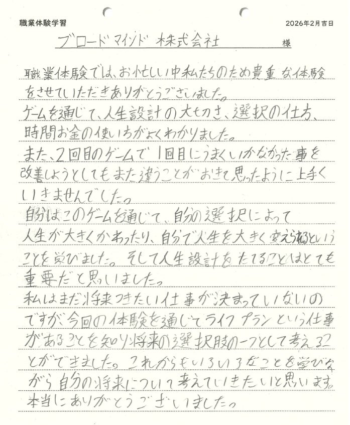 ~“仮想人生体験”を通じてライフプランの重要性を学ぶ~