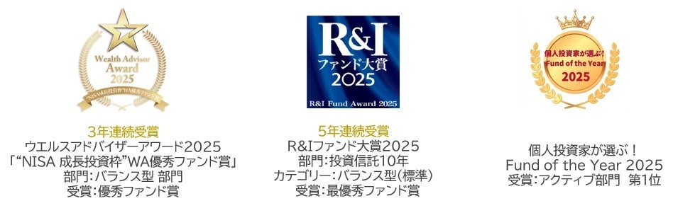 当ファンドは、株式と債券を半分ずつ組み合わせ、世界の国と地域に分散投資することで、リスクを抑えた運用を継続してまいりました。こうした運用のもと、安定した実績を積み重ねた結果、10年という長期の評価期間において高く評価されたものと受け止めております。