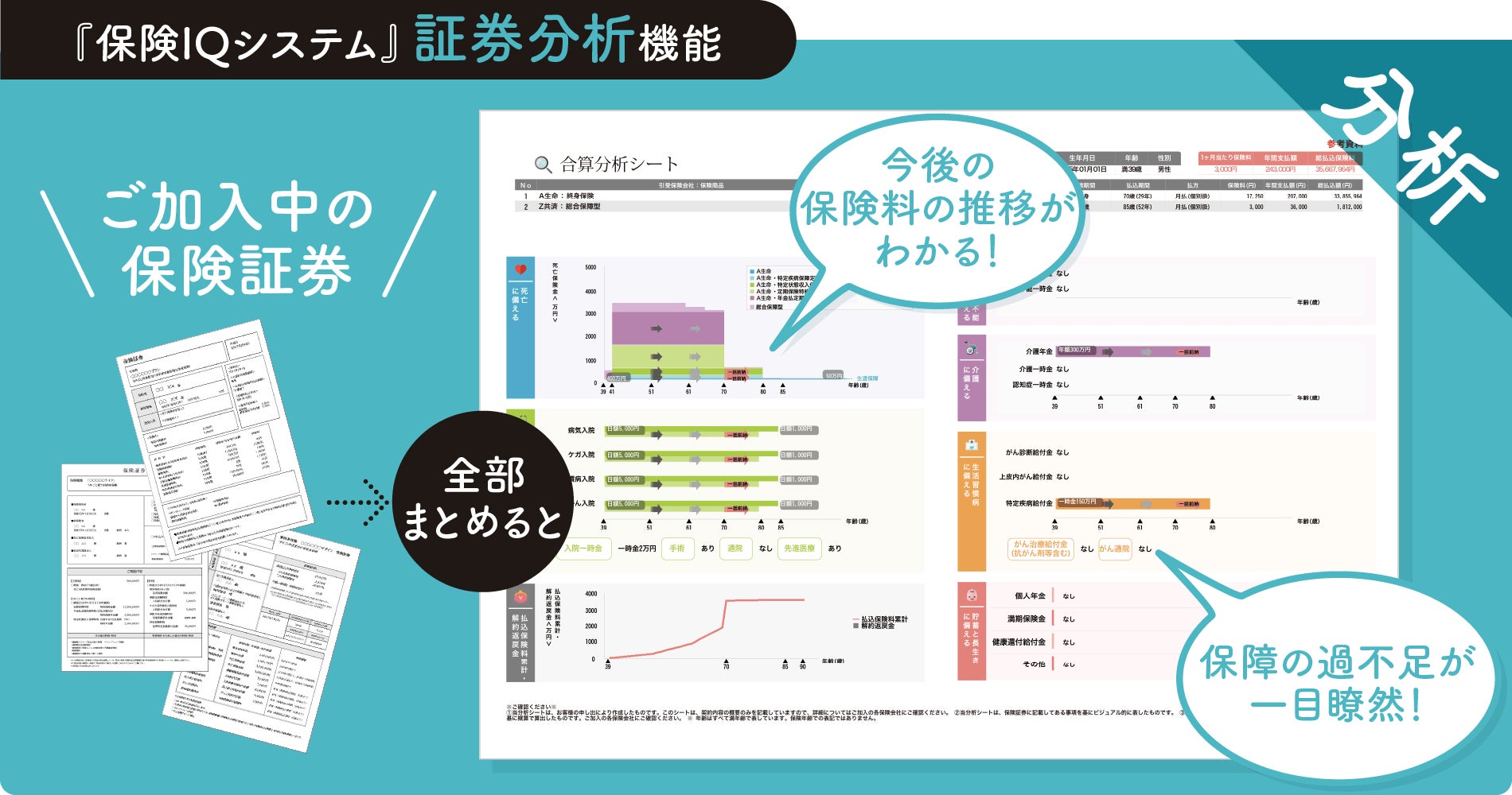 『保険クリニック®』では、独自開発の「保険IQシステム®」を利用し、コンサルタントの主観に偏らずお客様のご意向に沿った保険選びをお手伝いしております。 「保険IQシステム®」のメイン機能である「証券分析機能」と「比較機能」は非常にご好評いただいております。