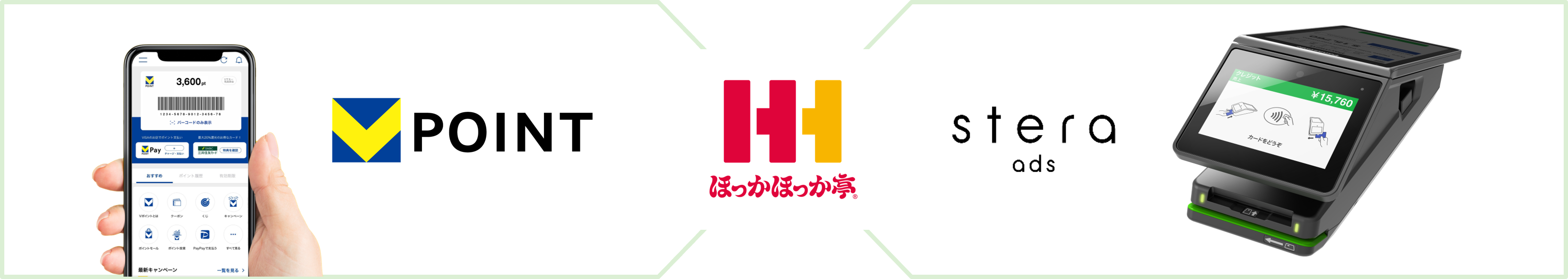 本施策は、「stera ads」を中心に、ほっかほっか亭が実施するメーカー商品のサンプリング施策や、CCCMKHDと三井住友カードが共同で提供するVポイントをインセンティブとしたエントリーキャンペーンを組み合わせ、「認知・体験・購買・効果検証」を一気通貫で実現するユニークな取り組みとなります。