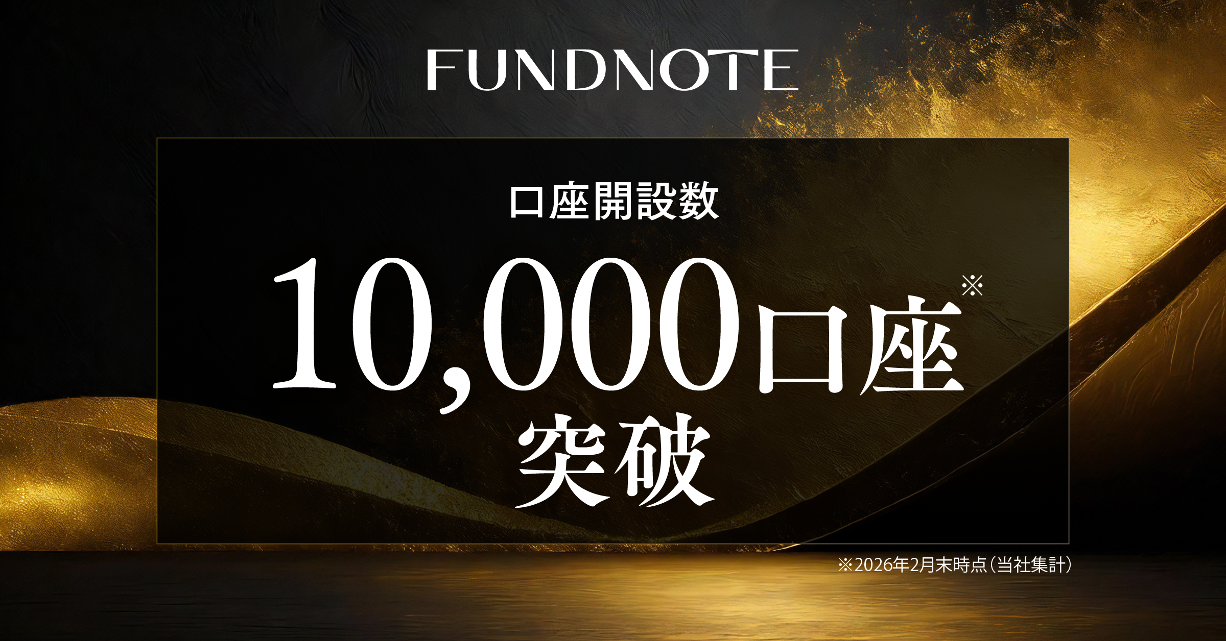 fundnote株式会社(本社:東京都港区、代表取締役:渡辺 克真)は、このたび口座開設数が1万件を突破したことをお知らせいたします。(2026年2月末時点)