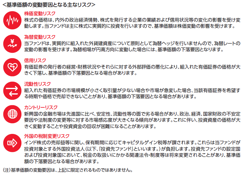 インドの株式には、外国投資家の保有比率の制限があります。したがって、外国投資家の保有比率の状況によっては 運用上の制約を受ける場合があります。なお、インドの制度等は変更される場合があります。