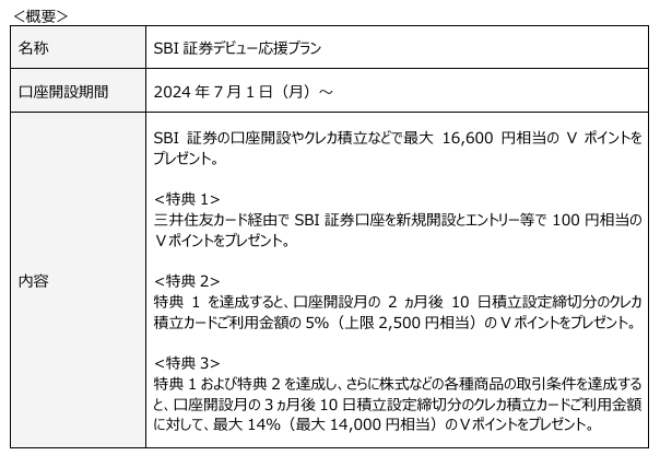 ■キャンペーン3:SBI証券デビュー応援プラン 最大16,600円相当のVポイントプレゼント