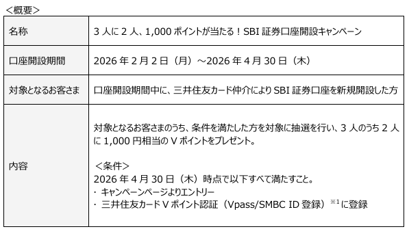 ■キャンペーン2:3人に2人、1,000ポイントが当たる!SBI証券口座開設キャンペーン