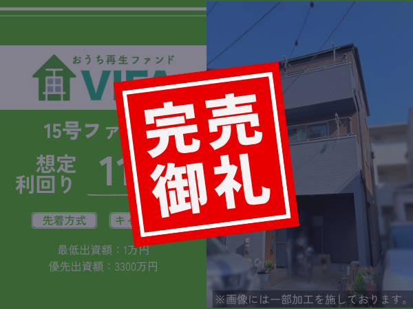 「おうちの再生ファンドVIFA」15号ファンドは、先着申込受付を終了いたしました。