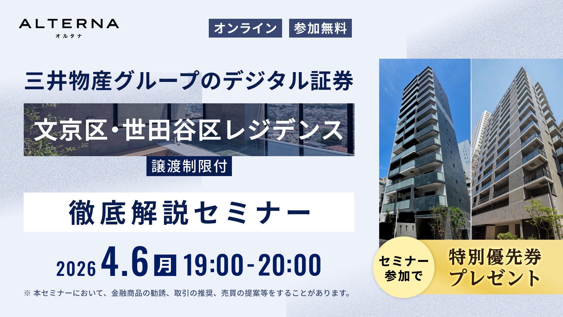 「三井物産グループのデジタル証券~文京区・世田谷区レジデンス~(譲渡制限付)」徹底解説セミナーを開催(4/6)