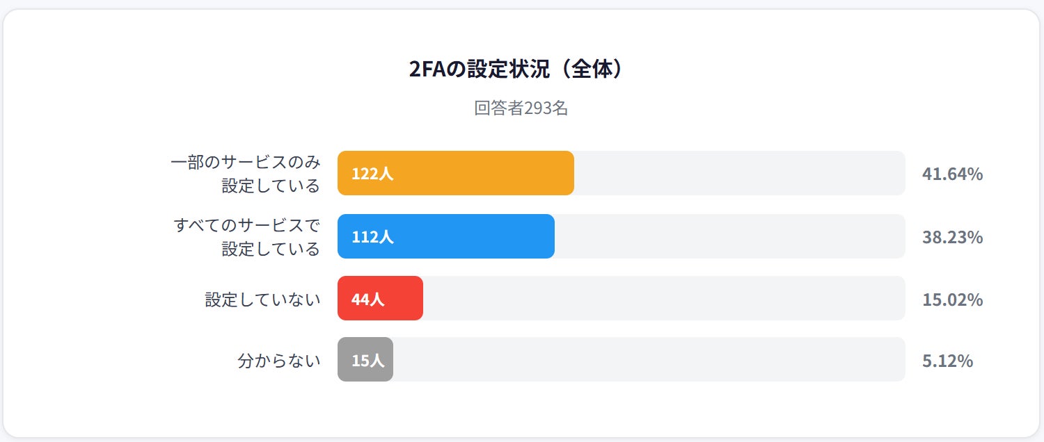 株式会社Clabo(本社:東京都港区、代表取締役:上野 育真)は、暗号資産利用者293名を対象に「二要素認証(2FA)の設定状況とセキュリティ意識」に関する実態調査を実施しました。
