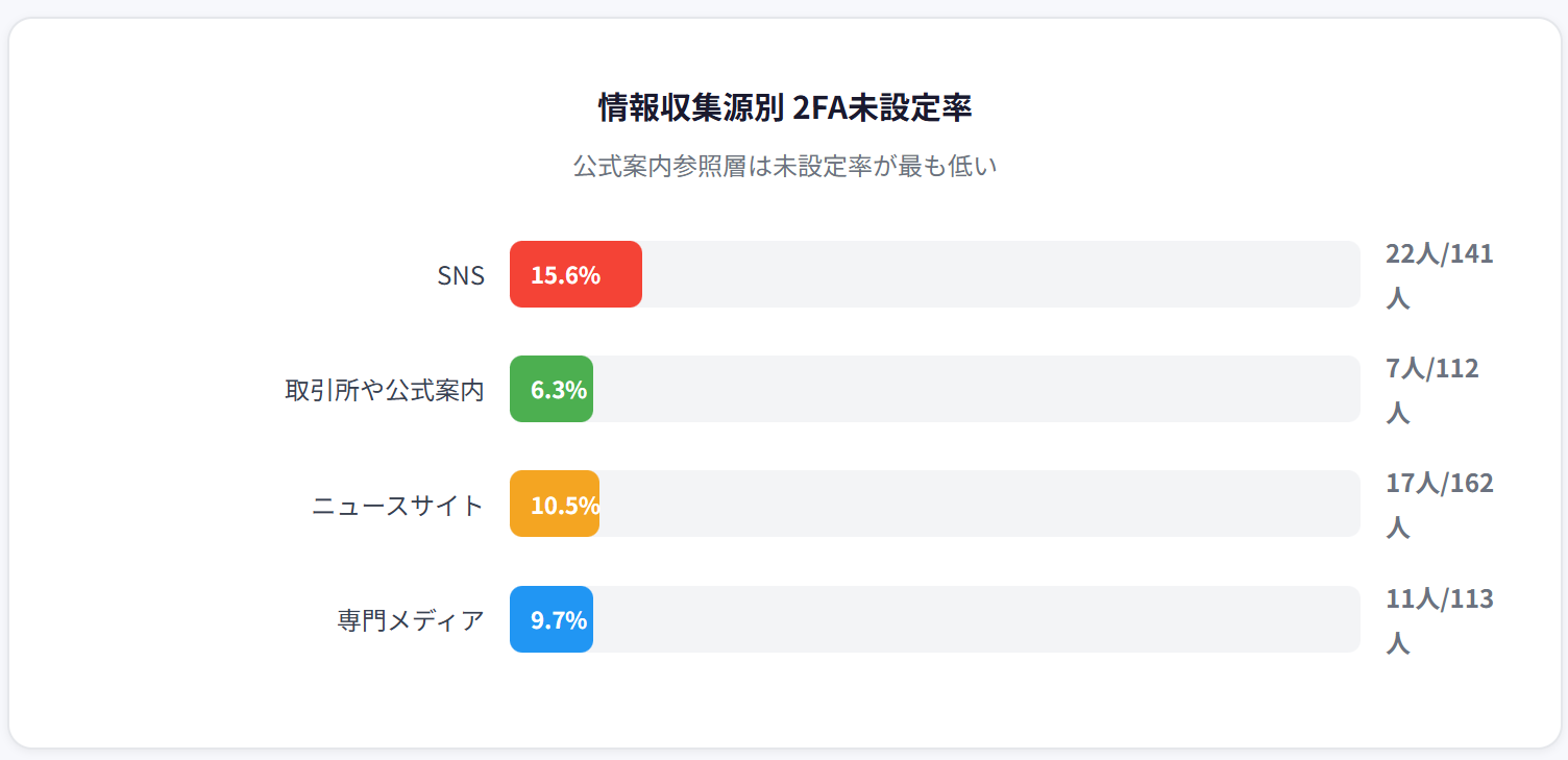 情報収集のチャネルと2FA設定率には、無視できない相関関係が存在しています。