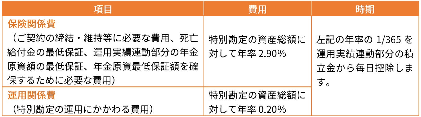 *年金支払開始日以後は、年金支払開始日時点の費用の率が年金支払期間を通じて適用されます。